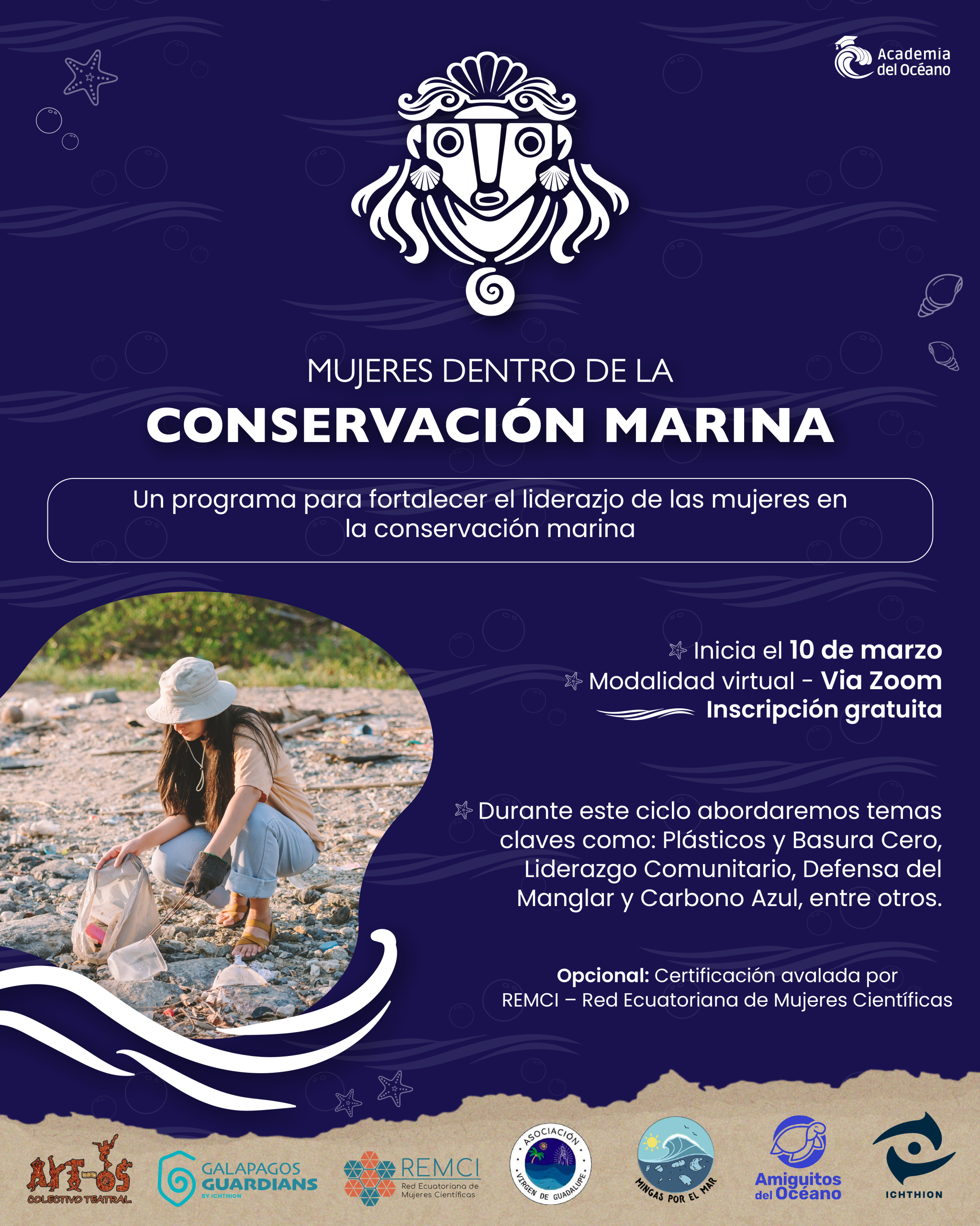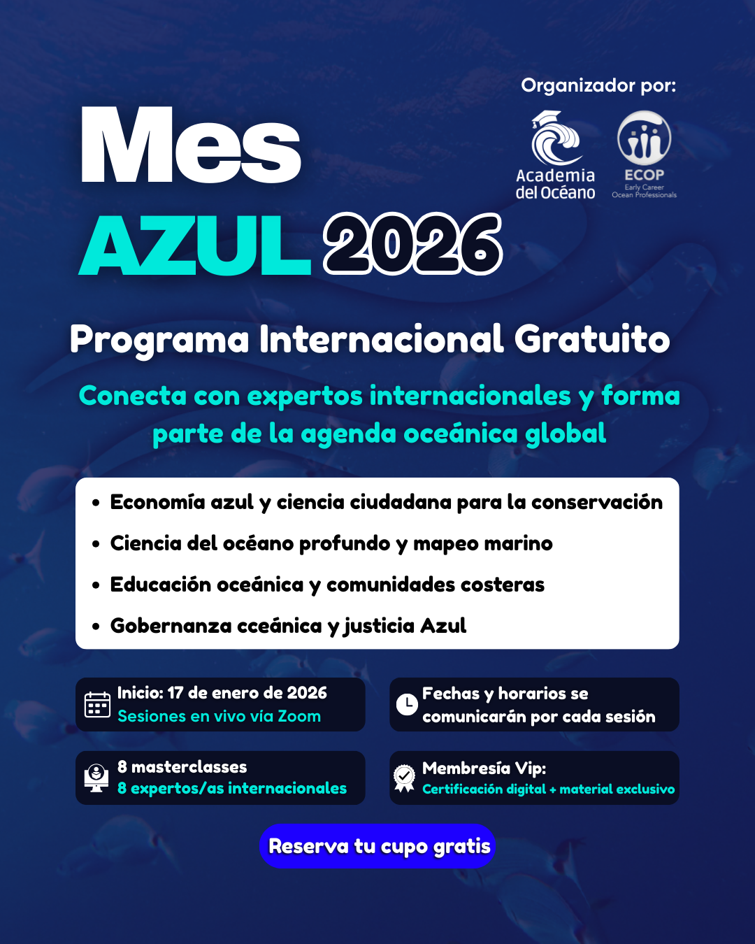 Ciclo gratuito de ocho masterclasses en vivo con expertos y expertas de América Latina sobre océano, clima, educación y sostenibilidad, organizado por Academia del Océano y ECOP Centroamérica.